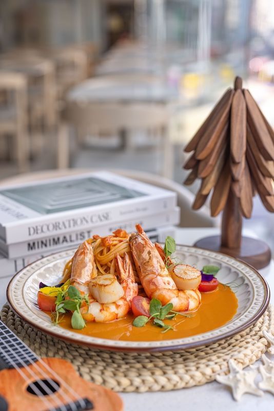 燒虎蝦帶子龍蝦汁燴扁意粉